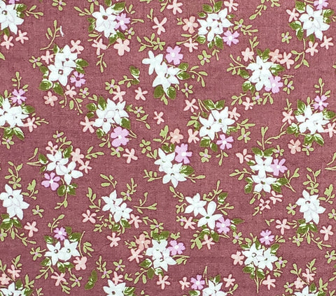 Printed Exclusively for Jo-Ann Stores, Inc. - Maroon Fabric with Retro Style White and Pink Floral Print