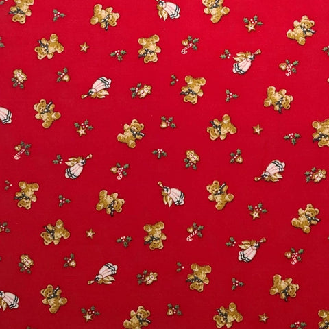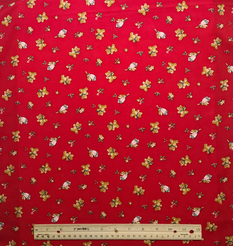 Concord Fabrics Inc by The Kesslers - Dark Blue Fabric / Carolling Teddy Bear Print