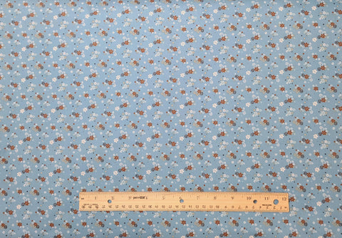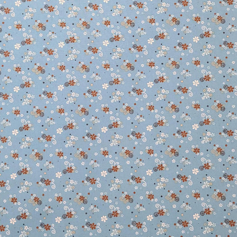 Berkshire by Janine Buck for Blue Hill Fabrics 7235 - Sky Blue Fabric / Brown, Black, White, Tan Flower "Butterfly" Print