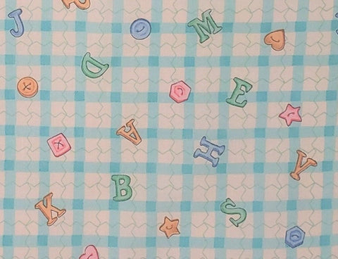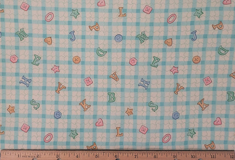 MBT - White and Bright Blue Check Fabric / Cartoon-Style Summer Print / Glitter Accents