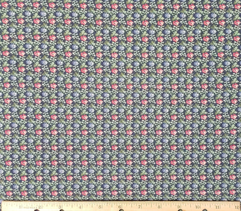 Peter Pan Fabrics - Yellow Fabric / Gold and Light Blue Vintage Flower Print