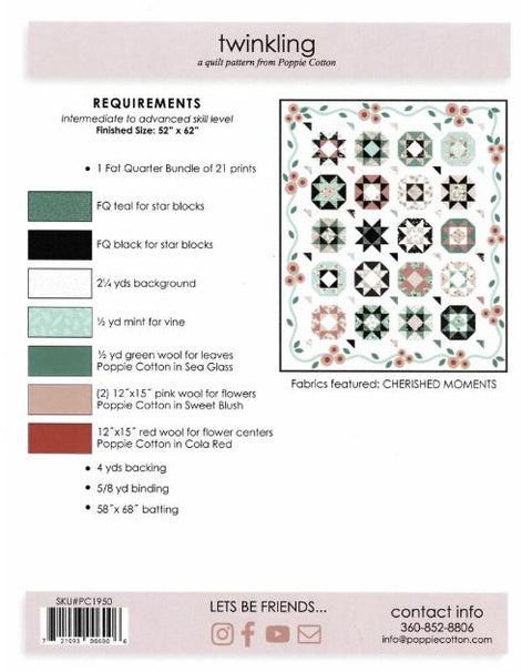 Twinkling - A Quilt Pattern from Poppie Cotton / Finished Size: 52" x 62" / Skill Level-Intermediate to Advanced