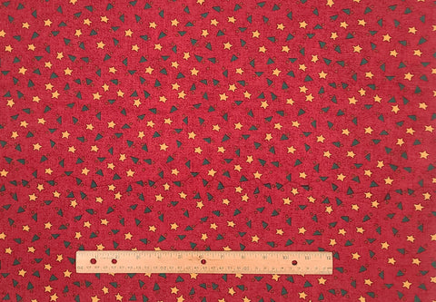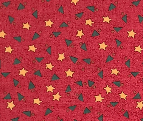 Quick as a Wink by Rebecca Carter for SSI - Dark Warm Red Tonal Fabric / Yellow Stars, Green Triangle and Brown Square Pattern
