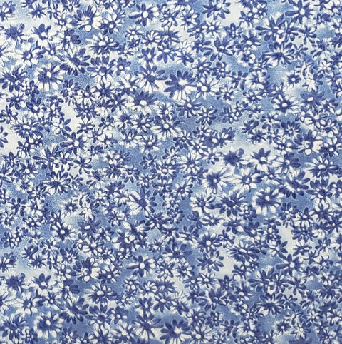2004 Blank Textiles, Inc. - Mottled Blue Fabric with Darker Blue Floral Print