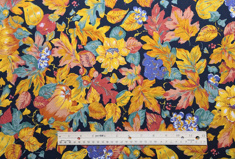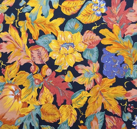 Autumn Spirit #5283 Spring Industries - Black Fabric / Large Leaf, Flower, Fruit Print