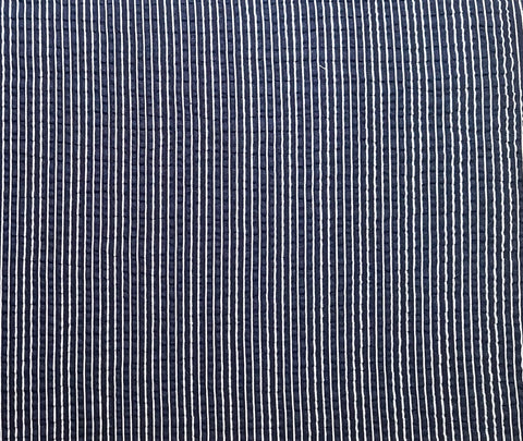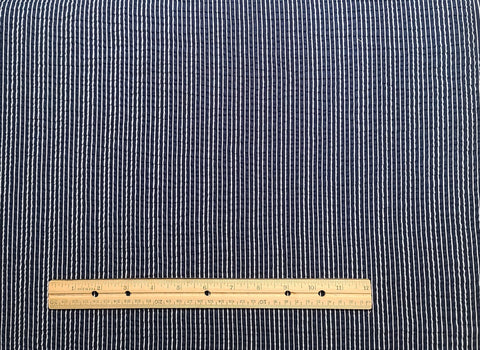 Crinkle Cotton - Dark Blue Fabric / White Pinstripe - Selvage to Selvage Print
