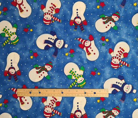 Fabric Traditions 1999 - Medium Blue and White Tonal Fabric / Snowman and Star Print