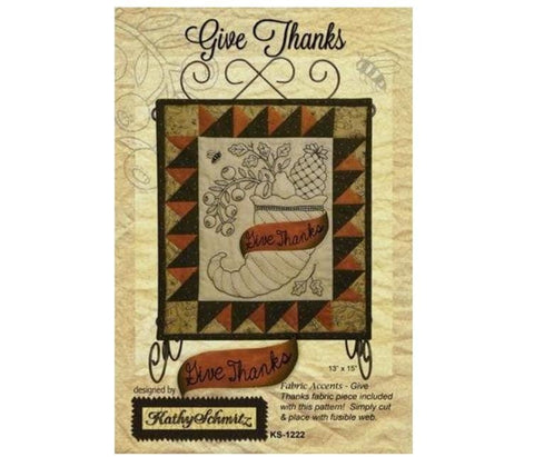 Kit includes Pattern and Fabric ONLY - Give Thanks fabric piece is included with this pattern! Simply cut & place with fusible web.