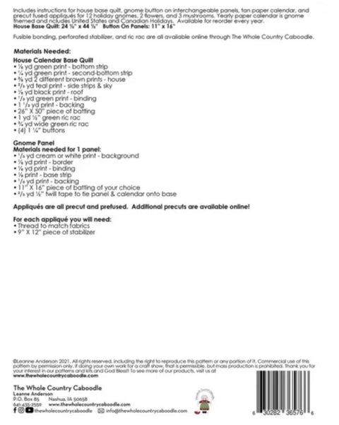 Gnome for the Holidays Applique Calendar Kit - The Whole Country Caboodle
