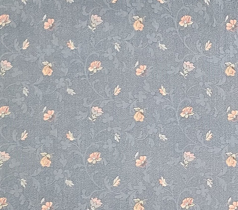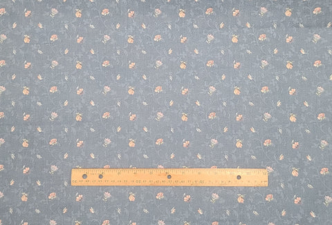 House 'n Home Fabrics & Draperies, Inc 1988 - 58" WIDE Fabric - Medium Slate Blue Fabric / Pale Pink, Blue and Tan Scattered Flower Print