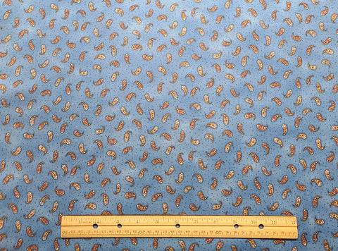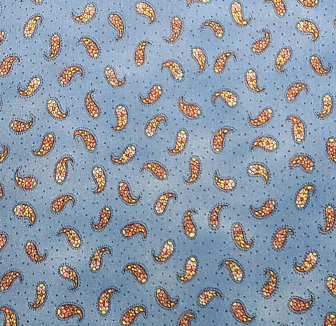 JoAnn Fabric - Medium Blue Tonal Fabric / Dark Blue Pin Dot / Rose and Coral Tossed Paisley Print