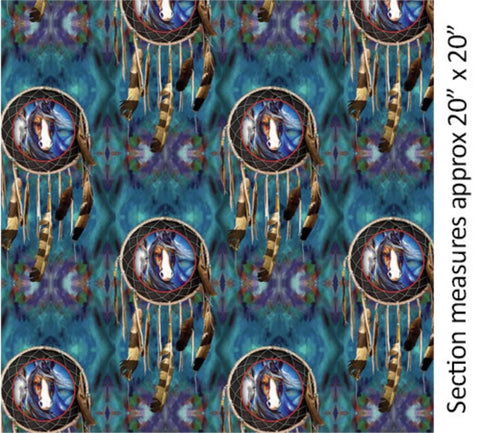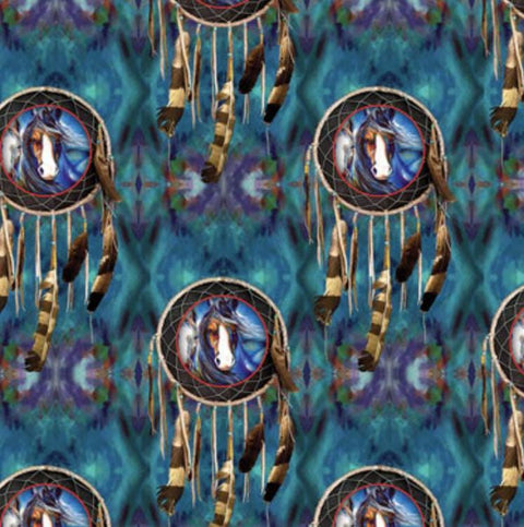 Painted Horses by Marcia Baldwin for Benartex Style 6663-84 Dreamcatcher Teal - Teal Watercolor Background Fabric
