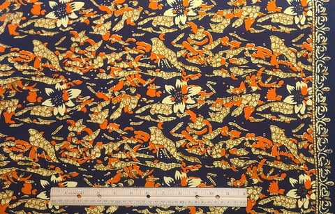 Phathana Pusa 100% Fast Colour Cottoron G5/35NO557 - Dark Blue Fabric / Orange, Yellow, Gold Abstract Flower Print