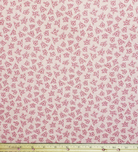 Reproduction Style Vintage Medium Pink Fabric with Pink Flower Print
