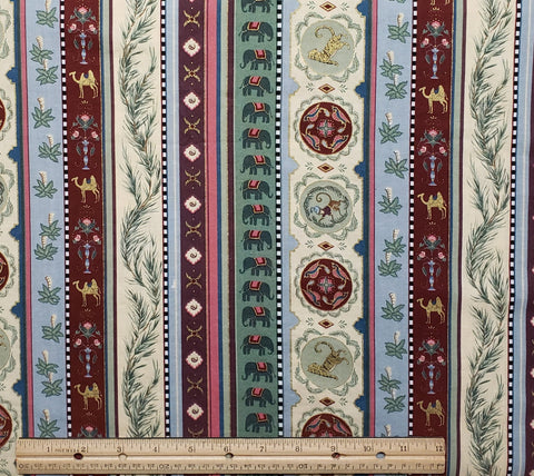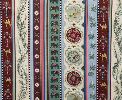 Stripe Fabric / Vintage / Green, Blue, Plum, Burgundy, Rose Elephant, Tiger, Monkey, Camel / Gold Metallic Accents