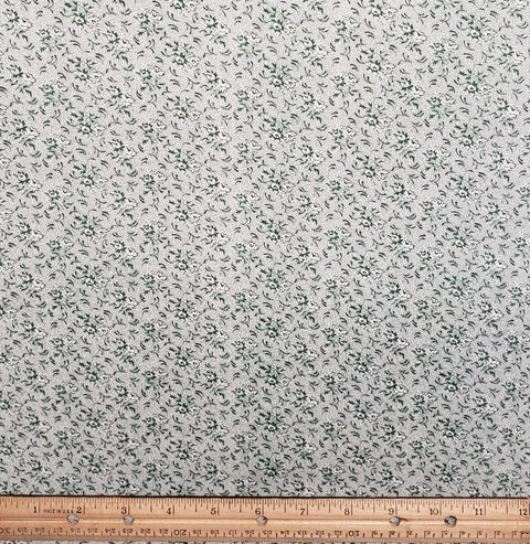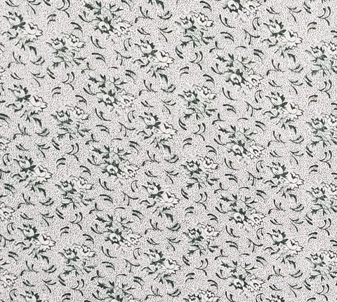 Vintage Style White Fabric with Dark Green Flower and Dot Print - Selvage to Selvage Print